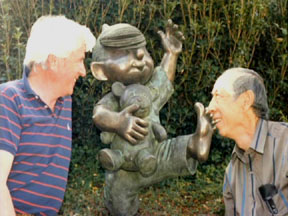 He submitted some of these to local galleries and discovered that there was considerable demand for the pieces. Soon he was doing more sculpture and less film work. This was fortunate timing, as school budgets for educational films were being cut back, decreasing the royalties from the primary market for his films. The demand for Wah's bronzes increased steadily, and soon there were some twenty galleries showing his work from Florida to the Hawaiian Islands. In 1987, Hank Ketcham commissioned Wah to do a life-size statue in bronze of Ketcham's cartoon character "Dennis the Menace" for the children's park by that name in Monterey. Four sculptures were eventually done, one went to Ketcham's own garden, one in his studio, one at the Arnold Palmer Children's Hospital and the forth was placed in Dennis the Menace Park in Monterey, California. Wah gained a great deal of pleasure from the fact that the sculpture was (and still is) regularly polished by the many small, affectionate hands of the neighborhood children who visit the park.