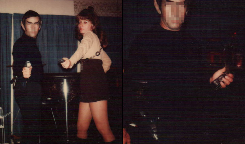 First it must be said that the individual's name is naturally kept from public awareness out of the usual respect for privacy, but for dialog purposes we will refer to him as "Harry." Harry has no association with show business or our hobby, and hadn't given the props a second thought during the dozen some-odd years since he sold them. Thus you can imagine his surprise at being contacted out of the blue after all this time and being asked the prying questions that we fans want to know about, so a gentle treading was naturally extended during our exchanges. Now a successful businessman in sales, Harry has been graciously supportive of our efforts to put the final missing pieces of history into place, and what we've learned has also clarified some of our understanding of the post-show fate of many of the props. After two combat tours in Vietnam straight out of high school, Harry returned to LA to attend college, and there became a huge fan of Star Trek; enough to even wear hand-made costumes to parties. A good friend of his - we'll call him "Jim" - worked at Ellis Mercantile, a then-huge Hollywood prop rental company that has since shuttered its doors. One day in 1969, Irving Feinberg dropped off some boxes with stuff from the cancelled show, and Jim, knowing his friend's enthusiasm, asked his boss if he could have a bunch. "Sure" was the reply, and that was that. So Jim, who later went on to work himself as a Hollywood Property Master, took seven items home (sans paperwork - no one cared back then) and handed them all to his grateful pal, who would then occasionally wear the props for effect on a Velcro belt. All that Harry could find today from those early years was a few dark Polaroids that show us two things; he and his future first wife as fresh-faced twenty-somethings (with his features a match to his current business website portrait) along with some props that resemble as best as clarity allows some of the very props in question: