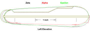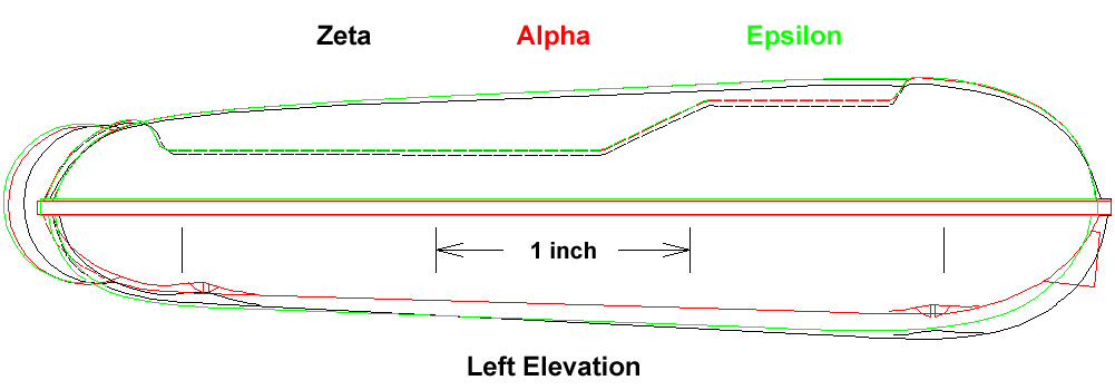 ![]() (1001 x 350) A scale drawing that compares the left elevation views of Alpha, Zeta and Epsilon, layered right atop each other. |