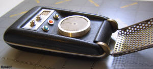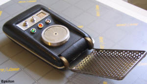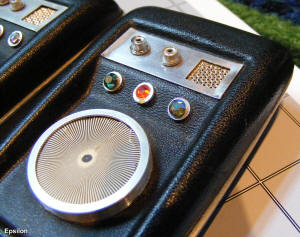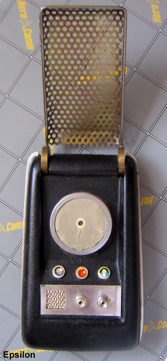 Thanks to Greg Jein for taking these above photographs (except for the last one) for our website. For edge shots, he propped it up against some small jars with black lids (in case you were wondering). The pictures below were taken to guide the Master Replicas communicator offering in 2006. |