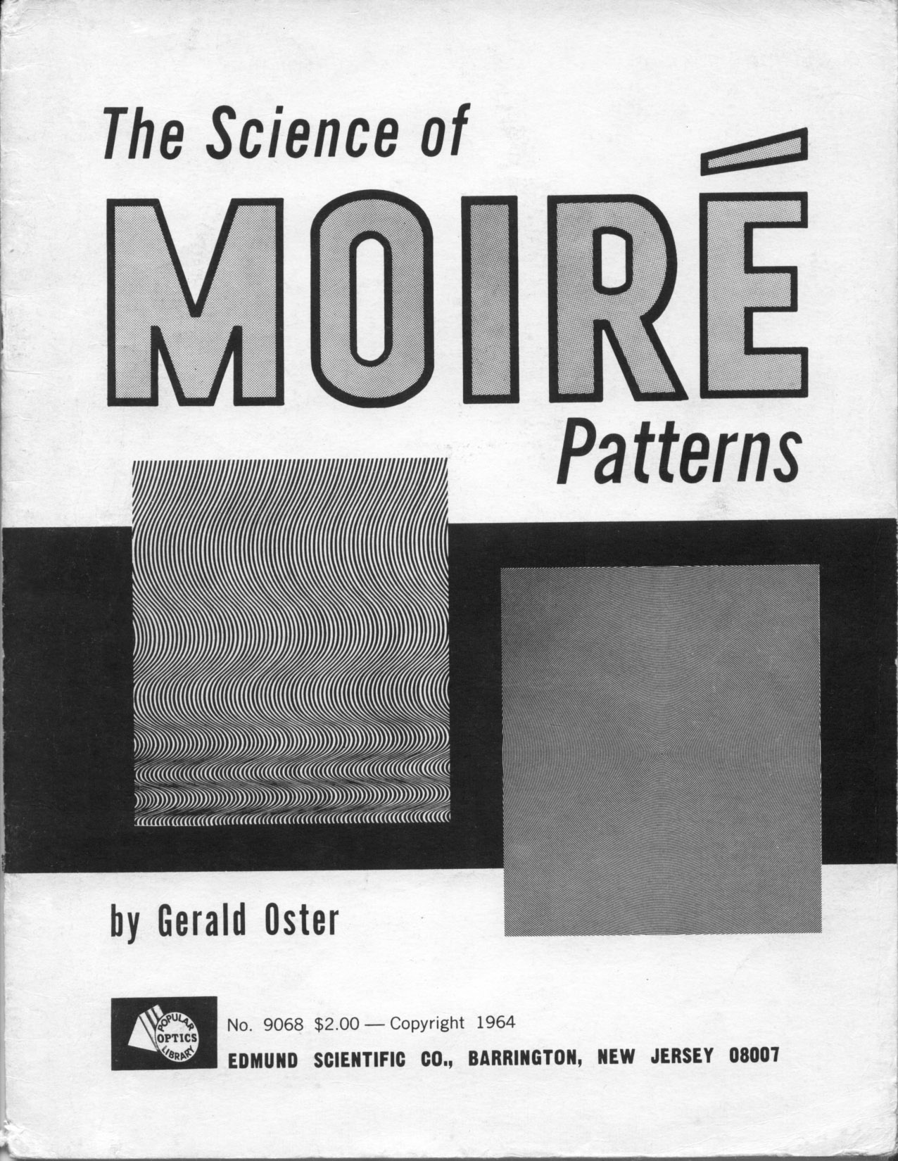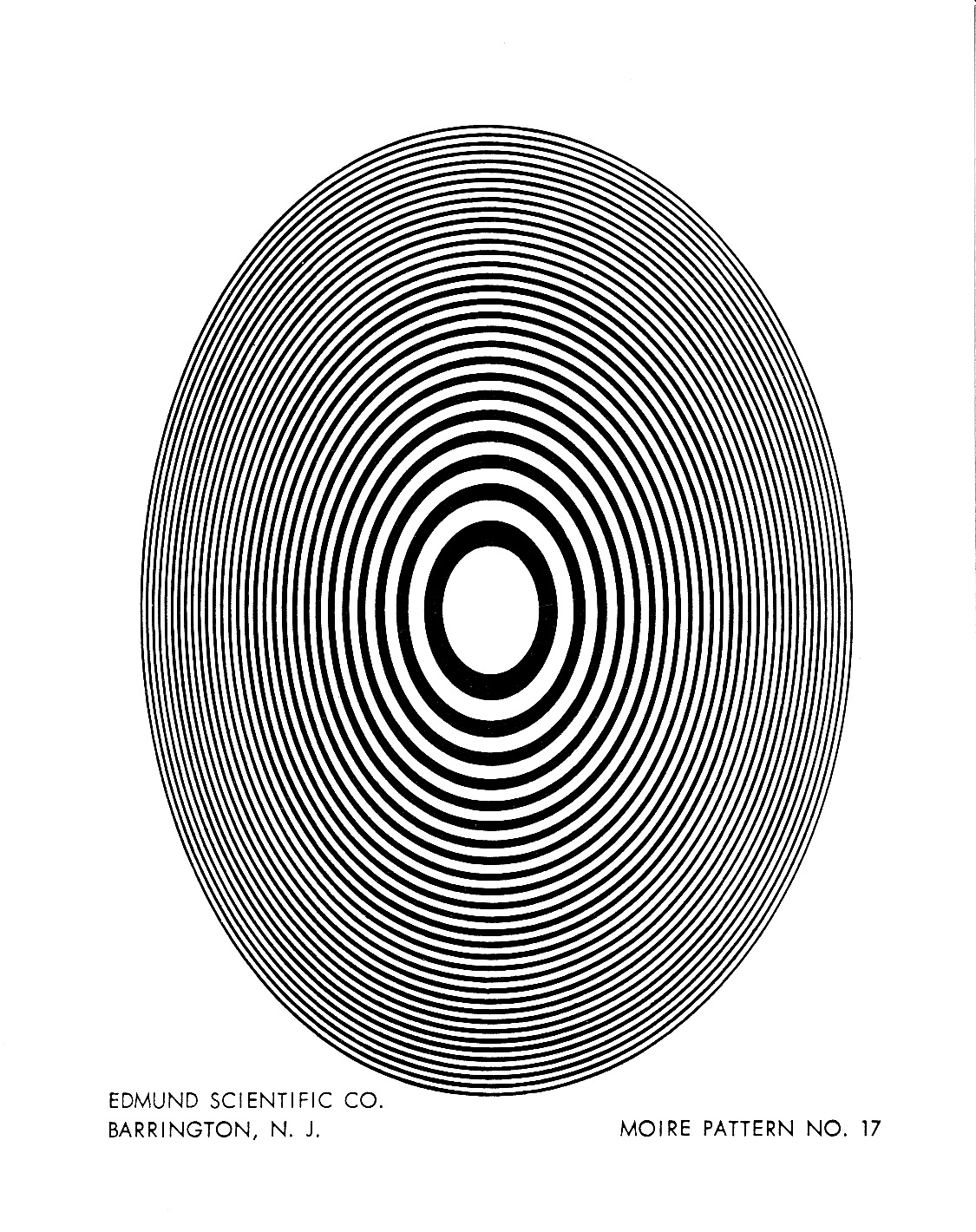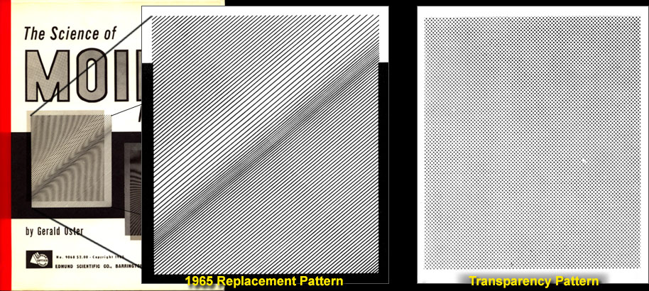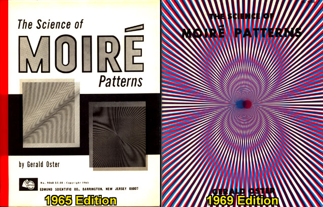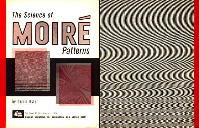 * * * * * * With the #4 pattern established as his hero model, Wah looks to have scrounged for extra similar images to put in some of his eight static dummies, so he turned to a related source. To accompany Edmund Scientific's moiré kit, Dr. Oster also wrote a short technical guide book called “The Science of Moiré Patterns,” copyrighted 1964 and selling for $2 at the time: