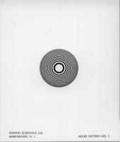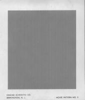 Sold in the mid 1960s alongside the above moiré science book, and then utilized by Wah in his two hero communicators (Alpha and Beta) plus in one of his two tricorders, was the Moiré Experimenter's Kit - Deluxe. Those kits that had Patterns #1 through #8 were called their "Series (A)." It contained eight 4½" x 3¾" Kromokote (a museum-grade semi-gloss white stock) cards, each with a different pattern and a matching transparency. The description in quotes is what Edmund named each. We have provided here scans of all eight cards at 300 dpi resolution. The "Deluxe" version of the kit had thicker transparencies (0.020") than the standard version (0.005"), plus slightly heavier cardstock. |