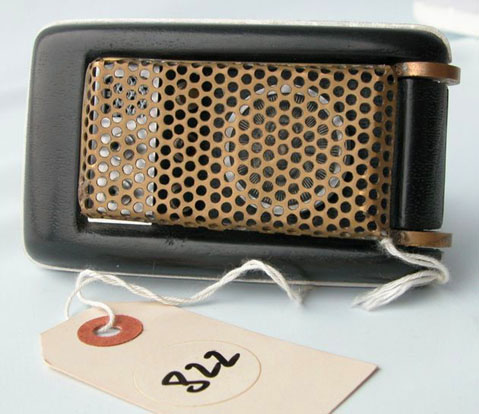 A forgery (or "fake" - used here interchangeably) is simply a replica that is purported by an owner or seller to be genuine. Sometimes the origins of this mistaken identity are accidental. However, with TOS communicator props, they have frequently been anything but. The Mark English ("ME") forgeries constitute the vast majority of those replicas intentionally pawned off as originals. In their day during the 1980s and 90s, the MEs fooled even the most knowledgeable experts at the time. Mailing out of Rhinebeck, NY, the man sold an unknown but substantial number of communicators, phasers and tricorders that seemingly had all the trimming of the genuine article. In particular his comms, based on an actual prop he is reported to have possessed for a time, cleverly incorporated some small authentic features and manufacturing quirks usually not seen in a "clean" replica. There is often a crudeness associated with the construction, dismissed by their advocates as evidence of Wah's hasty craftsmanship or of on-set repairs. Similarly, to show what people would expect in a half-century old prop, a pronounced aging effect was often applied to the brass antenna mesh. The originals, by contrast, were created with a discernable higher level of care and have weathered the years fairly well. All of these specific differences, or "tells" as they are known in the biz, can today allow one to instantly pick out a fake, even from the smallest of pictures. Today, ME fakes are everywhere, having already been sold to the next generation of unwitting collectors. As these have been accompanied by COAs (Certificates of Authenticity) either faked or signed by equally unsuspecting prop afficionados or agents, some owners today may still believe their MEs are real. Regrettably, of all the communicators that have been sold through accredited auction houses, EVERY SINGLE ONE has been a fake... except for four; Profiles In History's 2001 sale of Delta, owned for 32 years by TOS Set Decorator John Dwyer, Heritage Auctions' 2023 sale of Epsilon and Zeta from Greg Jein's famous collection, and Julien's 2024 sale of the Beta hero. And you can just ignore anything you've ever seen up for bid on eBay. Note - just because your old communicator prop does not exactly match this one below does not mean yours is then authentic. After all, it must also clear a much higher bar of perfectly matching a still-unaccounted-for comm and have all the details of known originals. Many variations can be seen among known forgeries, likely resulting from different people having done the work. Basically, if your comm has ANY of these tells, it's assured that it is unfortunately a replica. |