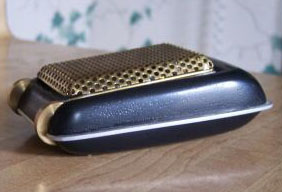 5. The control panel is cut with wavering outside edges, and many corners both on the outside and in the "mic-grill" rectangular cutout are very rounded. Originals are seen with corners cut much more crisp and sharp (shown here). 6. The mic grill is of the wrong material, using a mesh with a similar diagonal pressed pattern, but the holes have a different size and/or spacing: