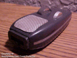 The current owner obtained a midgrade hand phaser ("P1") from a writer who worked with the show who himself was given the prop directly by a high-ranking staff member during Season 2. Signed documentation from the famous author with these details is accompanied. The tribble is genuine too. The owner first sent us the one picture of both his prized items shortly after our site's launch, but his interest perked up considerably when he later saw the midgrade phasers at the bottom of our Return to Vasquez page. For the first time ever was another P1 that looked just like his. He has since given us the other five photos below and permission to publish them. Thank you, sir! |