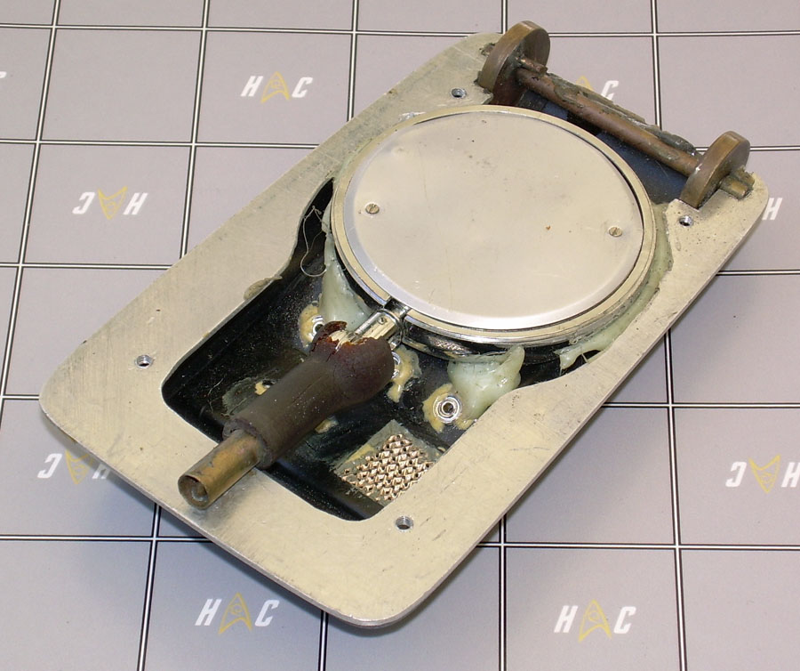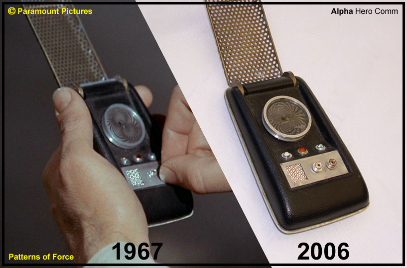 Alpha comm, the most celebrated version of the most storied prop in Sci Fi TV history, has been located! (12/22/06) An anonymous west coast collector kindly responded to our invitation to submit pictures of possible original communicator props for verification and to secure its listing and value. We are happy to announce that individual was given very good news indeed. Safely tucked away for nearly four decades, Alpha comm - the better-photographed of only two mechanized heroes built by special effects artist Wah Ming Chang in 1966 for the original Star Trek series - remains in superb condition, though age has taken its natural course with a few elements. The HeroComm staff, after conducting a full analysis, has been granted the honor of presenting for the first time not only comprehensive photos but construction details of the most influential and sought-after comm prop ever. Full measurements and tracings were also taken, so look forward to exacting blueprints, projected for Spring 2007.
