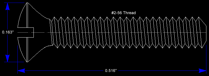Now then, if you were to choose the one quintessential screw type for your replica builds, that would have to be the 2-56 brass slotted oval head. That's becaues the great majority of screws we do see clearly (on Gamma and especially Kappa) are all the brass oval head: The above diagram is from measurements of the one on Alpha. |