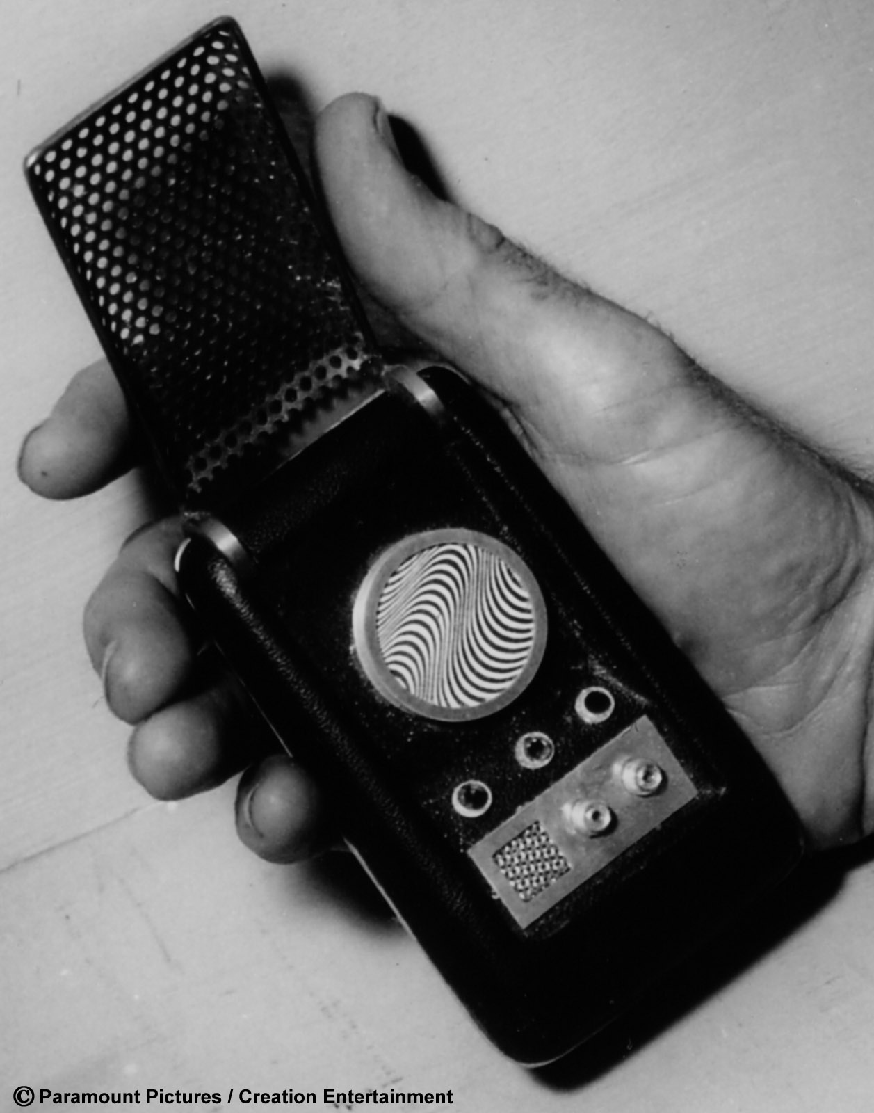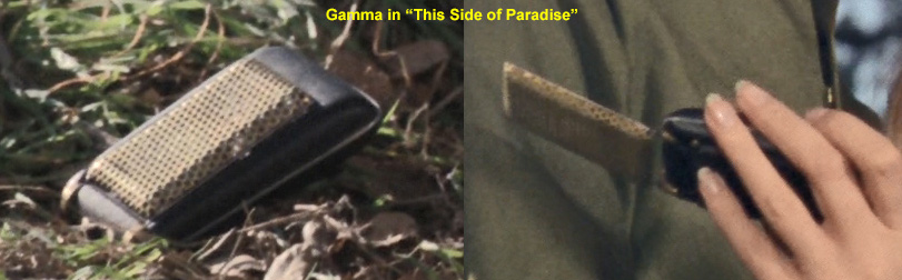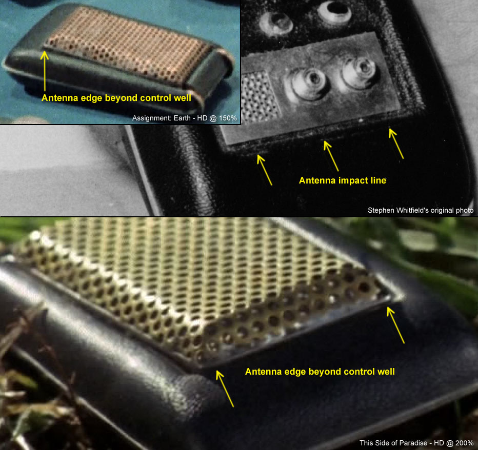 | Thanks to its great close-up in Assignment: Earth, we know with confidence this comm's rhinestones.