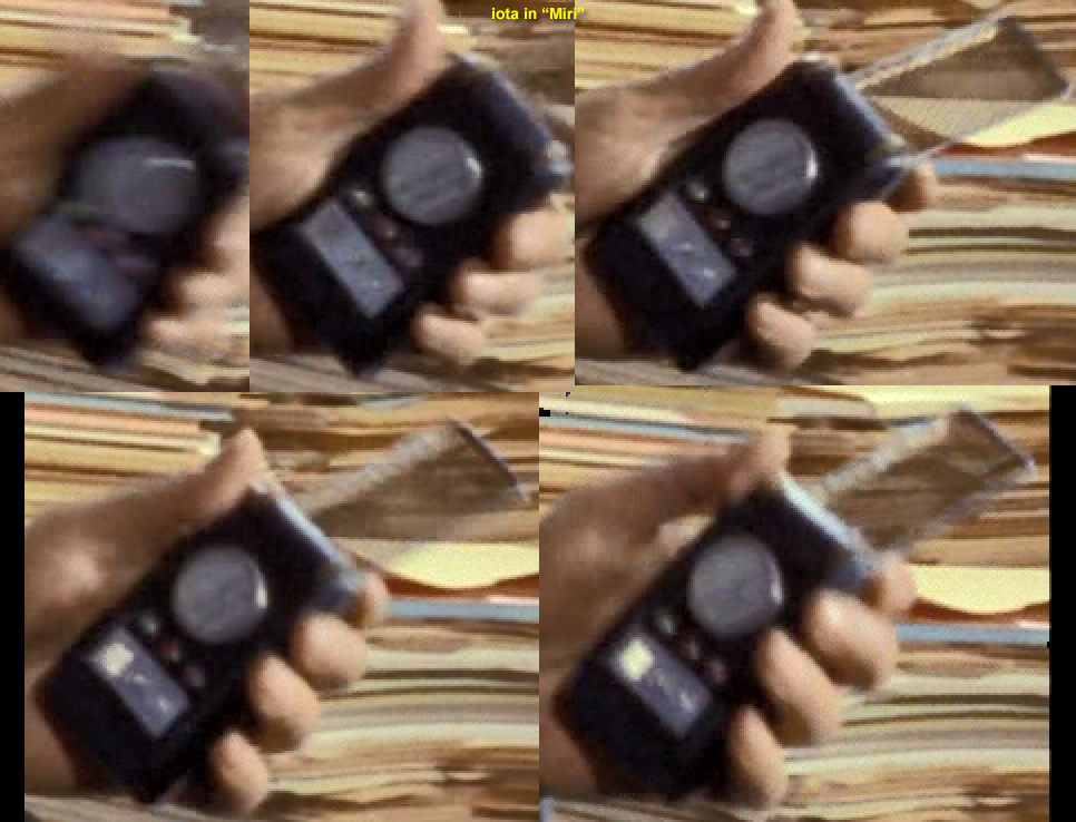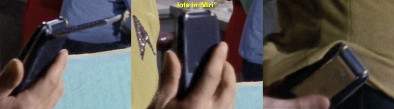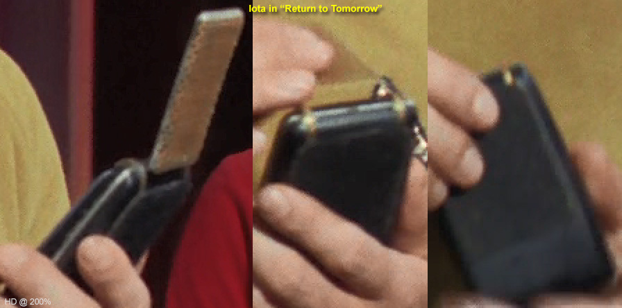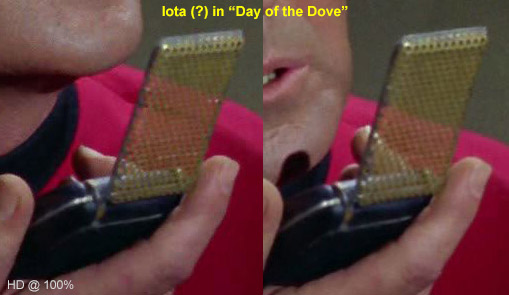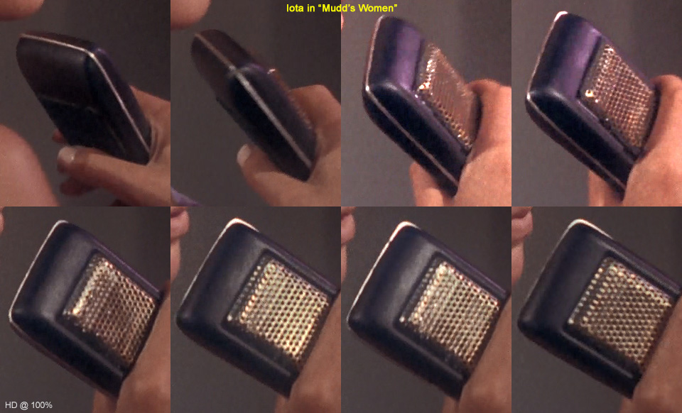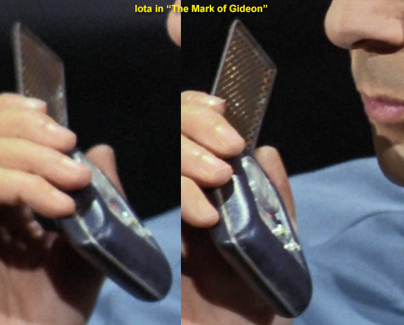. The identification of the comm above in Mudd's Women was mostly by process of elimination. Without back screws, with Velcro that starts higher up and with a minimum of midplate exposure, we're left with only Iota and Theta. The deciding factor? Once Harry opens the comm on the table, the slightest bit of green-ish color appears right where Iota's half-pearl would be poking up: