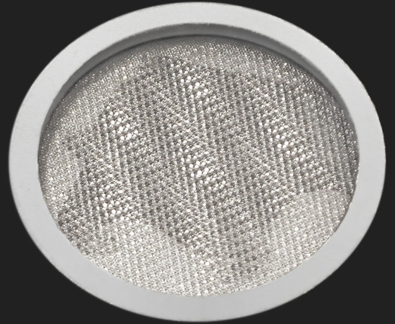 p.s. This material can produce yet more nifty effects beyond what's shown above. For instance, placing a specular (mirror-like) reflective disk beneath your two layers jacks up the sparkle and overall brightness considerably. Or taking that concept even further, these sheets can also wow when light shines through them from underneath. In fact it could be conjectured that the strange details in Zeta - with a switch-sized hole in the shell under its control panel, and the drilled-through jewel hubs - could have originally been intended for a lit comm with this as its moiré insert, but the plan was eventually scrapped.