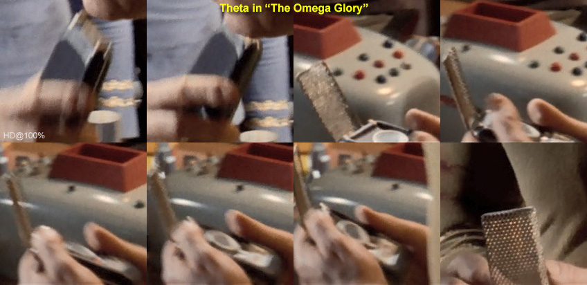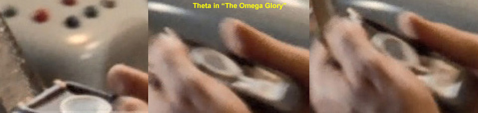 There at the bottom of the brightened "Mirror" amalgam is what must be the same big glue stain that's in "Bread," so that was nice corroboration. However, since the goal here was to find traces of the true moiré image, and nothing actionable was produced, this effort was judged to be a dead end. Then came the discovery of Theta in The Omega Glory - with the same obviously black moiré area and glue stain that's seen in "Bread":