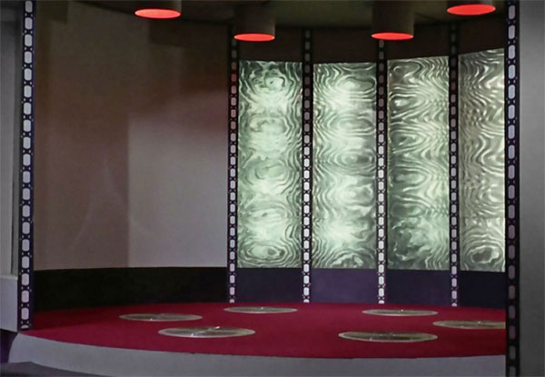 While the Hyacinth didn't quite turn purple, its shift to at least a dark red confirms that the data from the Jefferies Tube appearance is less reliable at determining true color than the more-static scene above Engineering. This, plus the fact that Wah put a red rhinestone in every other comm's center position, means we're sticking here with the Hyacinth. The control well in Theta is seen only two more times, while it's tossed to the floor in Bread and Circuses and for just a flash in passing in The Omega Glory. At this point in the show, the center rhinestone we just spent all that time examining is gone; its spot now just a bare hub top:
